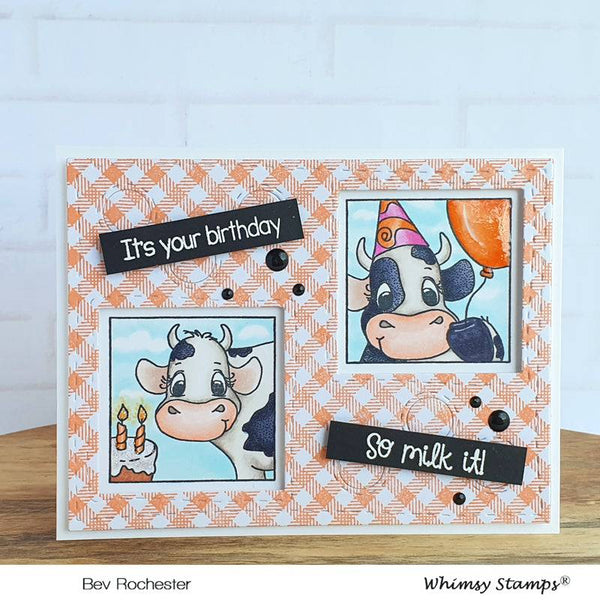 Clearly Whimsy Stamps Collection "Cow Party" illustrated by Crissy Armstrong for Whimsy Stamps. Coordinates with our Peekaboo Window 4 Die, sold separately.