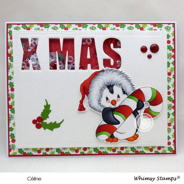 "Penguin Candy Cane" digital stamp designed by Crissy Armstrong for Whimsy Stamps.