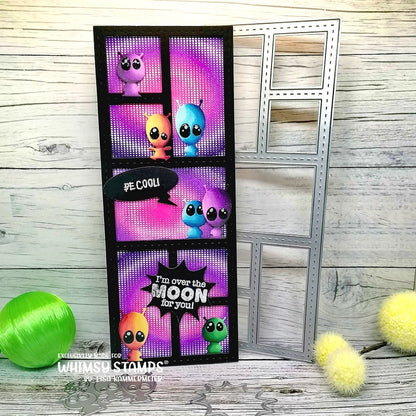 The innovators of slimline dies are at it again bringing you the Slimline Windows die. The whole collection of Whimsy Stamps slimline dies can help you make tall and skinny cards even more fun than they already are! This die is 8.25 x 3.25 with peekaboo windows and stitched details - perfect for shaker cards, hidden surprises, and peekaboo critters. Slimline cards fit in legal size envelopes.