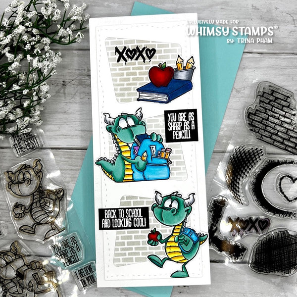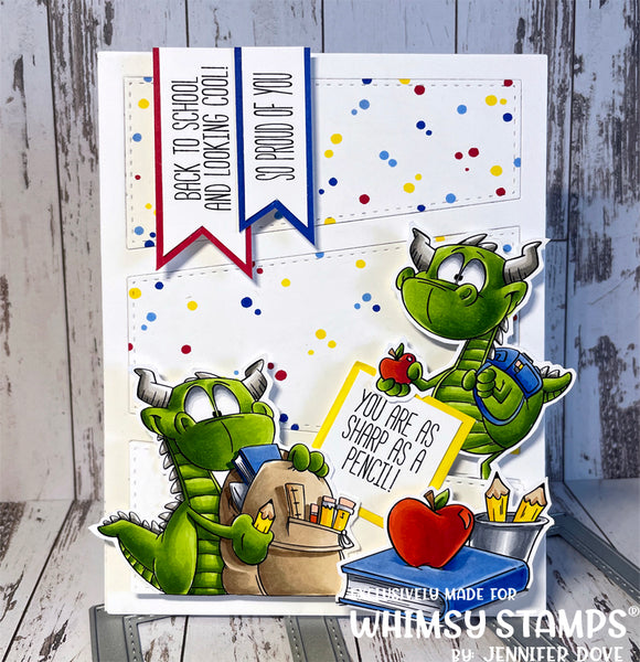 Clearly Whimsy Stamps Collection "Back to School Dragons" illustrated by Dustin Pike for Whimsy Stamps. © Whimsy Stamps.