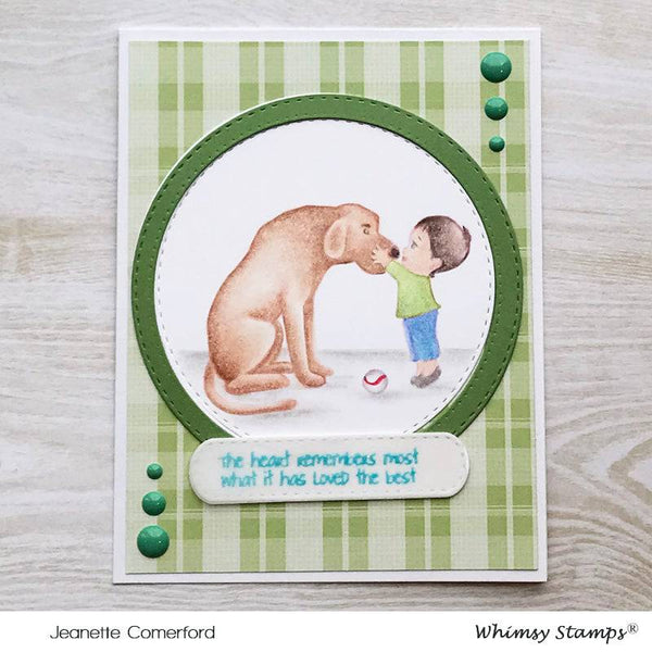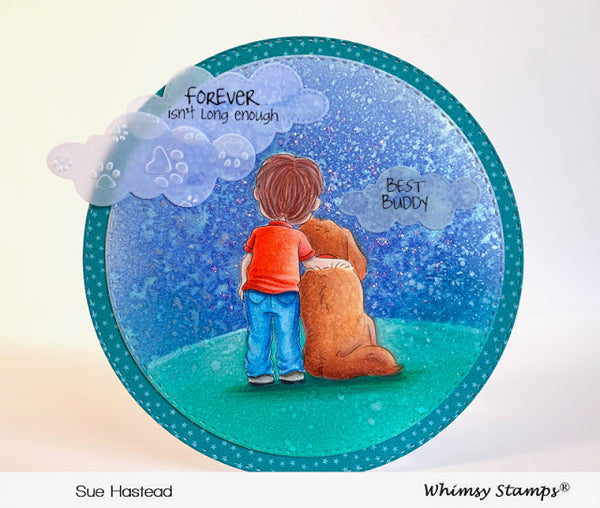 Clearly Whimsy Stamps Collection "Best Buddies" A set filled with sentiments and images perfect to share the love between a boy and his loyal canine companion. This set complements our Soul Mutts set (a girl version), sold separately.