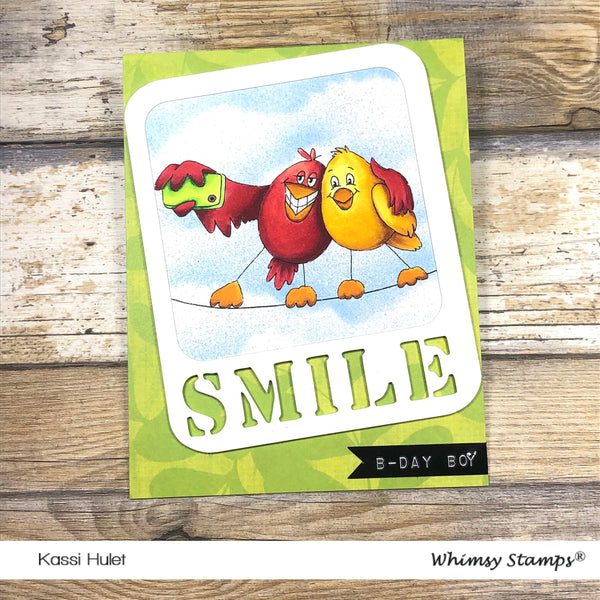 "Birdie Selfie" digital stamp designed by Crissy Armstrong for Whimsy Stamps.