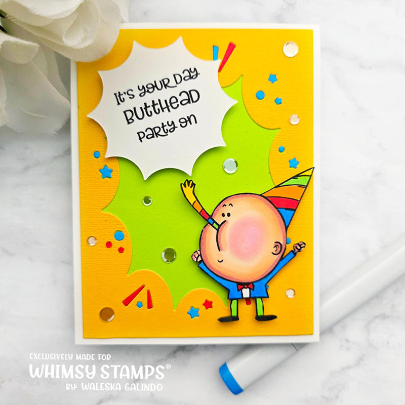 Party on with this funny little dude. Great for birthday or congratulations cards for any friend or "bro" who has a good sense of humor. Coordinates with our Birthday Butthead outline die, sold separately.