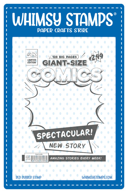 Whimsy Stamps Backgrounds Collection "Comic Book Page" deeply etched red rubber stamp. Coordinates with our Comic Book Page Outline Die, sold separately.