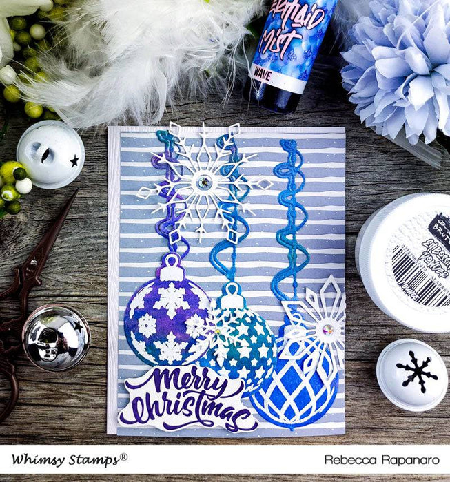 Clearly Whimsy Stamps Collection "Elegant Ornaments" A beautiful set of Christmas ornament baubles perfect for embossing or coloring. Set also includes holiday sentiments perfect to create a gorgeous card. This set also coordinates with our Elegant Ornament die, sold separately.