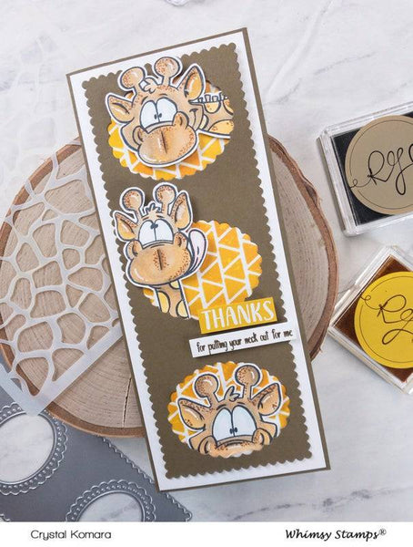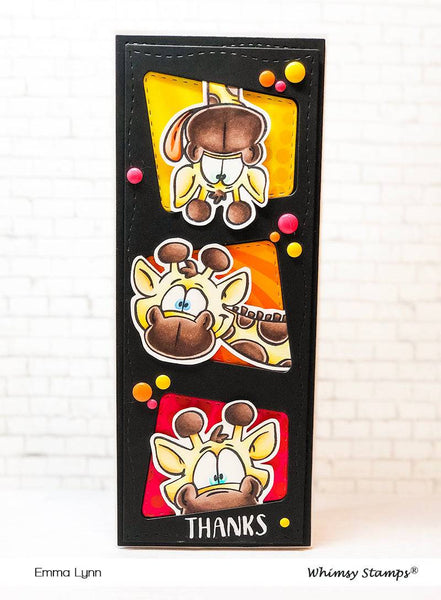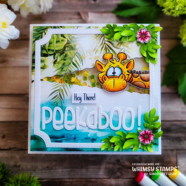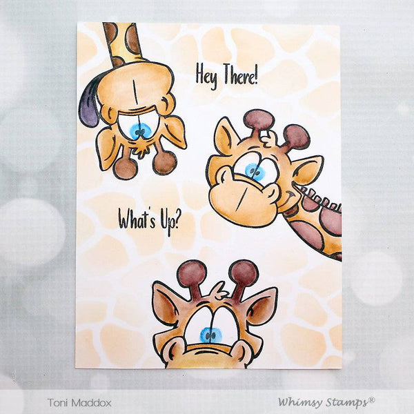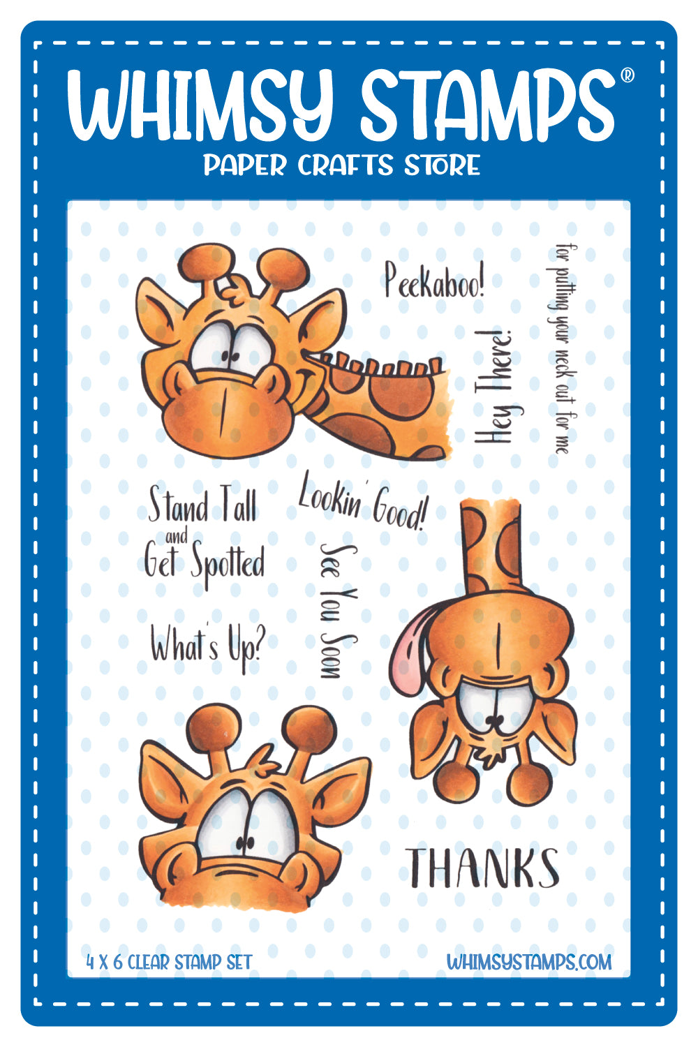 Clearly Whimsy Stamps Collection "Giraffes Peeking" illustrated by Dustin Pike for Whimsy Stamps. © Whimsy Stamps. Coordinates with our Giraffes Peeking Outline Die Set and Giraffes Peeking NoFuss Masks, each sold separately.