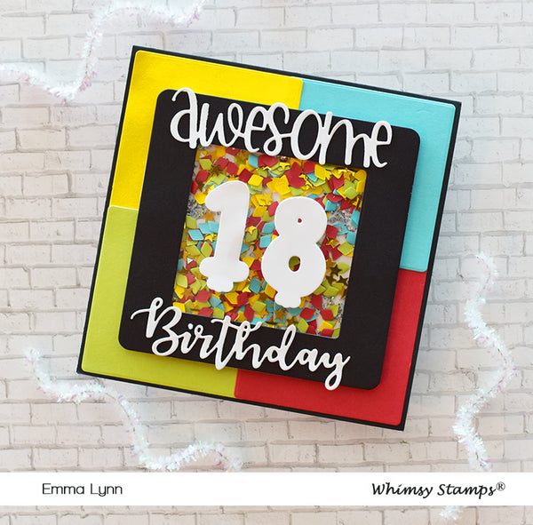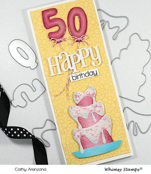 Set of 23 dies - use these outline dies to cut out stamped images. This set can also be used independently from the stamp set - create balloon numbers or build a cake for a birthday card or scrapbook page.