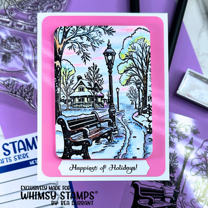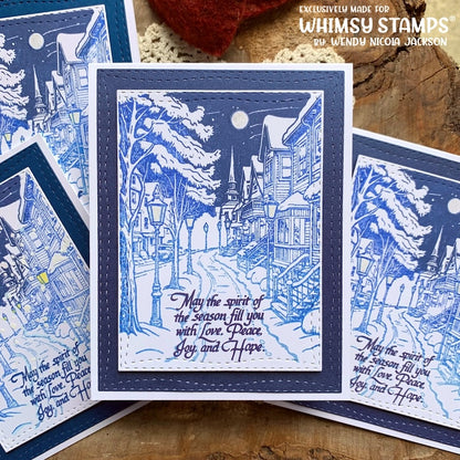 Set of 2 large vintage Dicken's inspired winter scene background stamps. Use these images to create quick and beautiful winter and holiday cards.