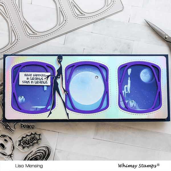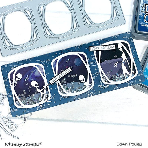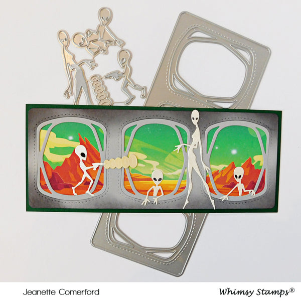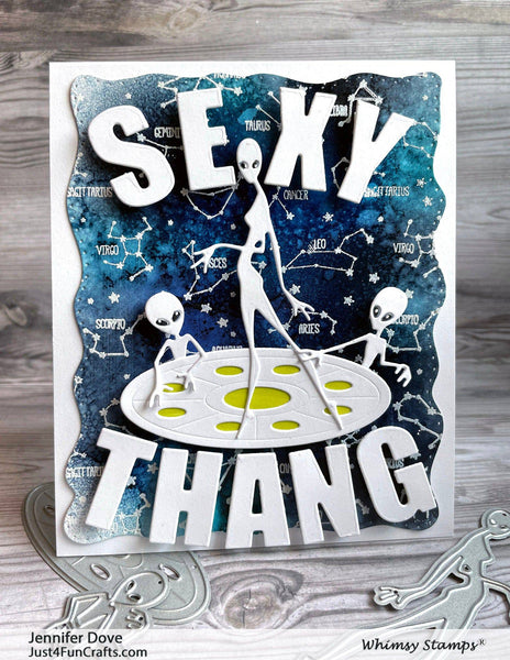This is a set of 4 dies - various aliens are perfect for complementing your space creations. Pair with other space collection products for added fun. Perfect to accent cards or scrapbook pages.