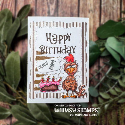 Clearly Whimsy Stamps Collection "Rooster Birthday" clear stamp set, illustrated by Dustin Pike for Whimsy Stamps. © Whimsy Stamps.
