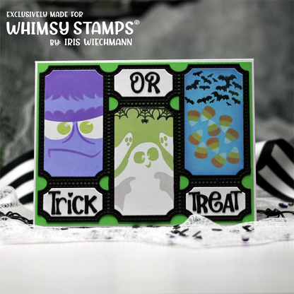 This spooktacularly fun stencil set includes three layering stencils to create creepy cute Halloween scenes each inside individual ticket stubs. The design allows for mix-n-match of words or patterns inside the smaller ticket boxes. Coordinates perfectly with our Terrific Tickets Collection, (sold separately) and gives even more versatility and crafty Halloween fun time!