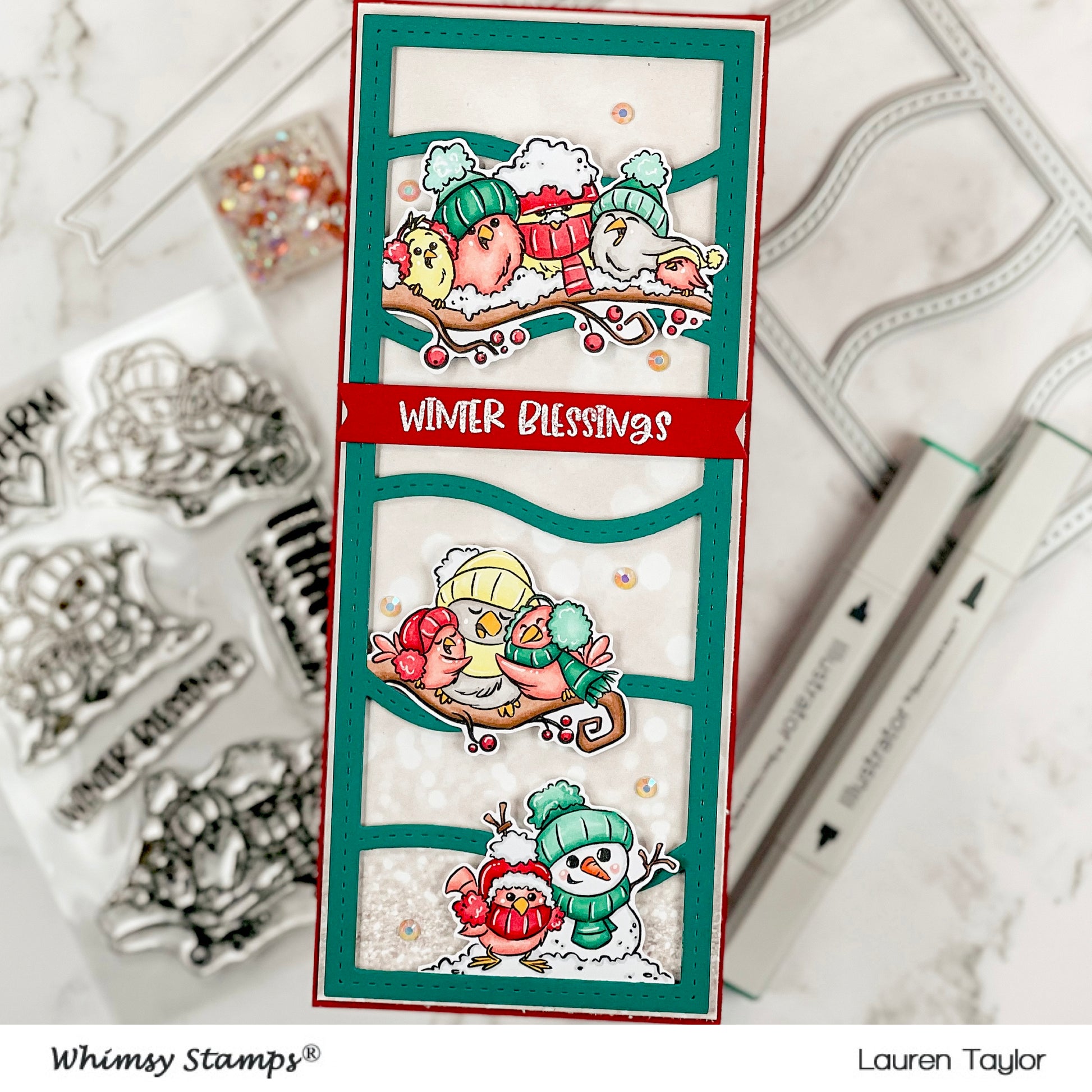 Clearly Whimsy Stamps Collection "Warm Winter Birds" image and sentiment set designed by Krista Heij-Barber for Whimsy Stamps.