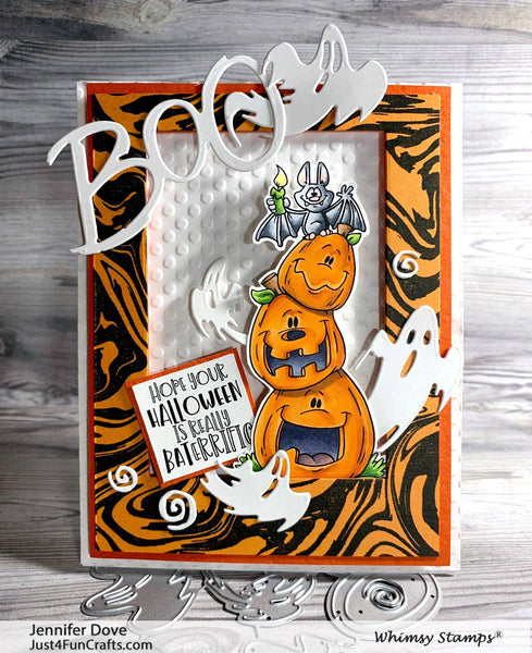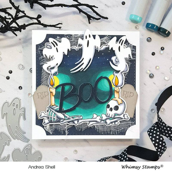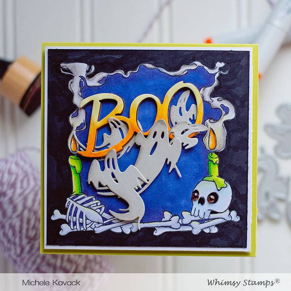 Set of 8 dies - create a focal point or use as an accent on fun Halloween cards. Ghosts, BOO letters and little swirly eyes for the center of the Boo.
