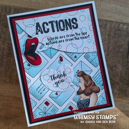 Set of 10 dies - create fun word bubbles on your creations - set includes 9 individual word bubbles, made to coordinate with many of the different Whimsy sentiment sets and clear stamp sets, as well as one word bubble border die.