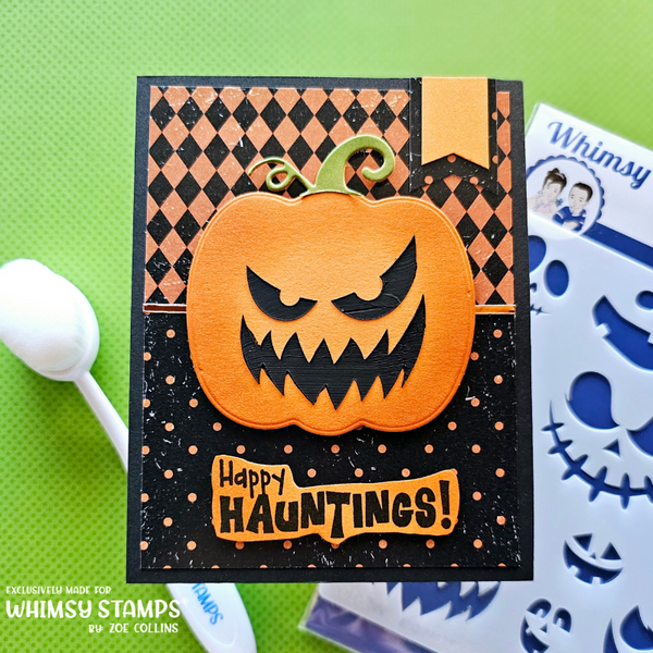 Whimsy Stencil Collection "Halloween Expressions"   Fun Halloween faces that can be used on their own or with our Build-a-Pumpkin die set sold separately.
