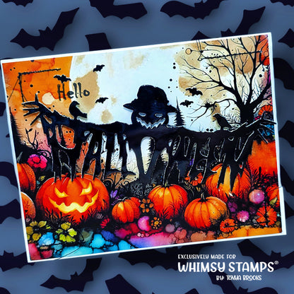 This is 1 large die - cuts out the word Halloween in a creepy/spooky design. Details include a scarecrow/carved pumpkin head, crows, and individual bats.