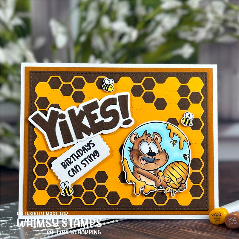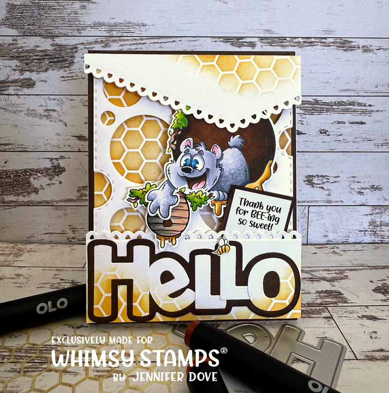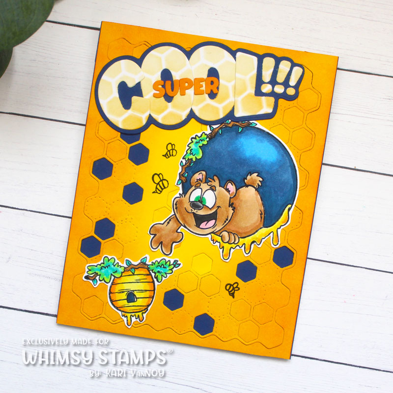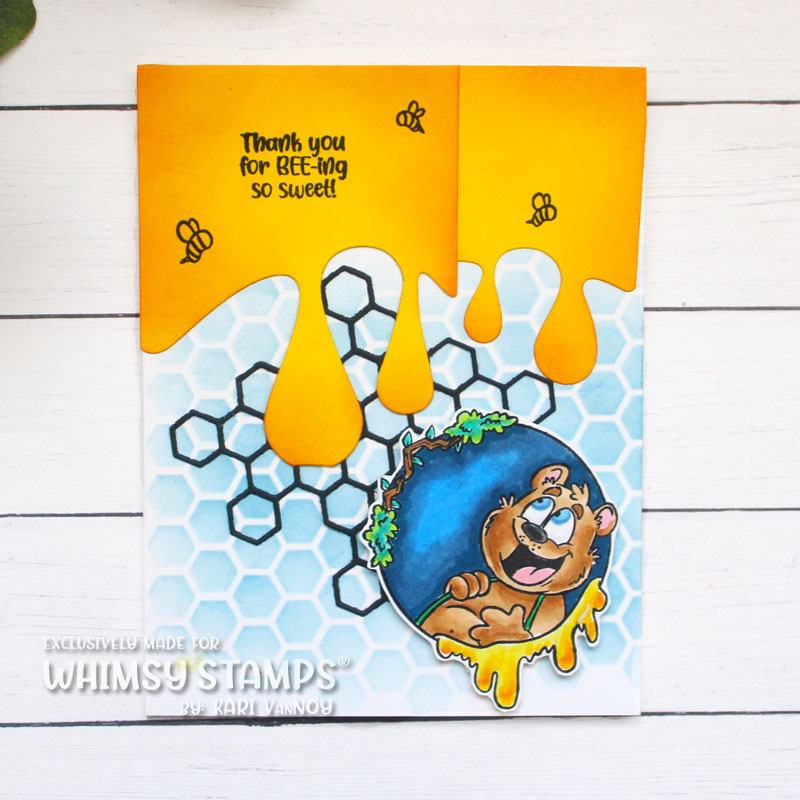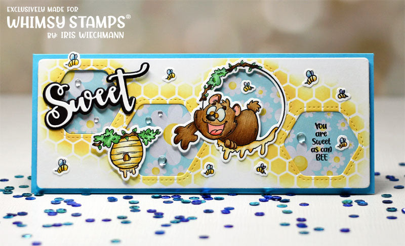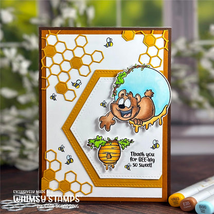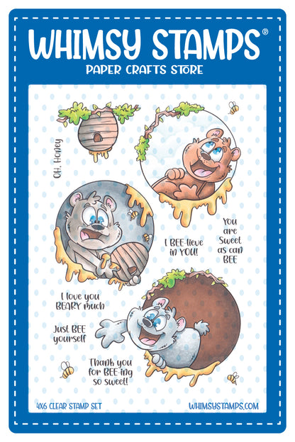 Clearly Whimsy Stamps Collection "Honeybear" clear stamp set, illustrated by Dustin Pike for Whimsy Stamps. © Whimsy Stamps. Coordinates with our Honeybear Outline Die Set, sold separately.