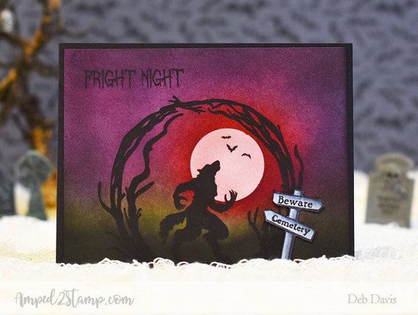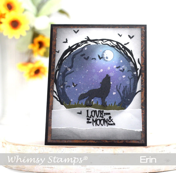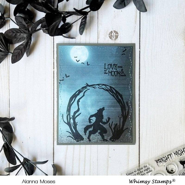 Clearly Whimsy Stamps Collection "Howling Night" This werewolf themed set includes images and sentiments for creating spooky Fright Night projects.