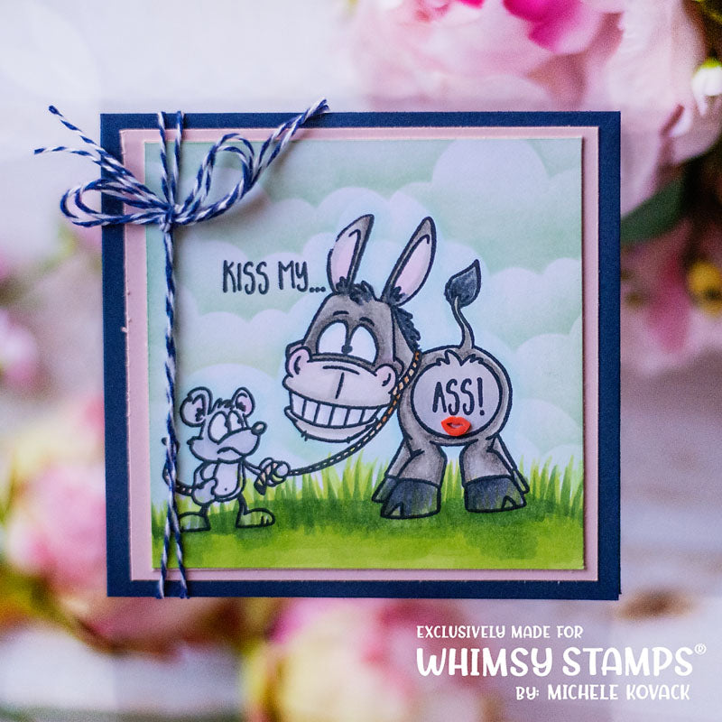 Clearly Whimsy Stamps Collection "Kiss My Donkey" illustrated by Dustin Pike for Whimsy Stamps. © Whimsy Stamps.