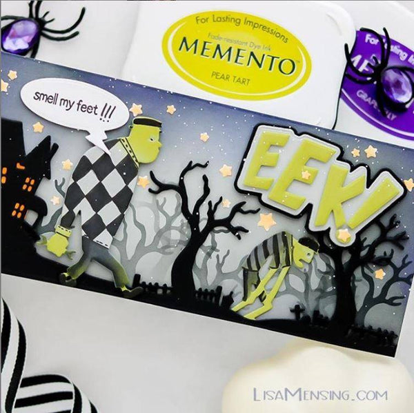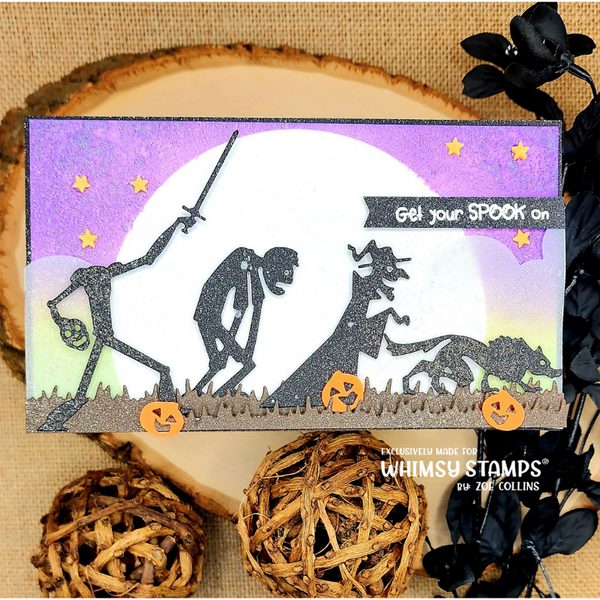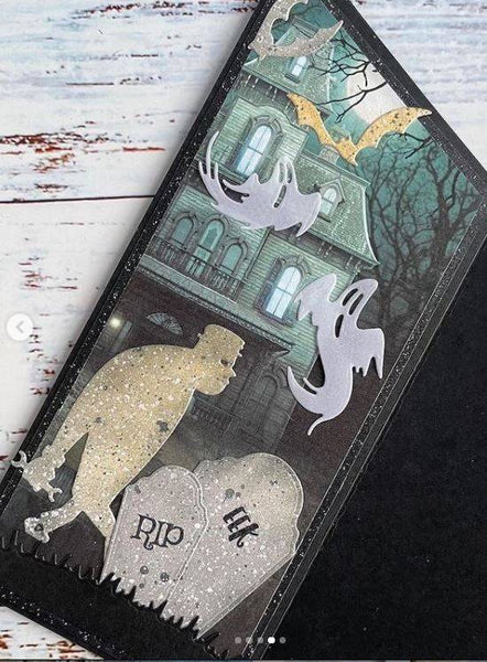 Set of 6 dies - Dracula, Frankenstein, a witch, zombie, wolf, and headless swordsman - perfect for adding to Halloween creations.
