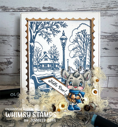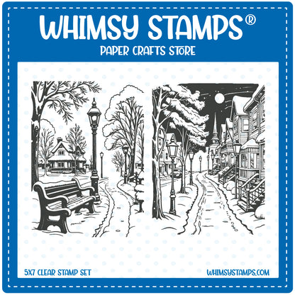 Set of 2 large vintage Dicken's inspired winter scene background stamps. Use these images to create quick and beautiful winter and holiday cards.