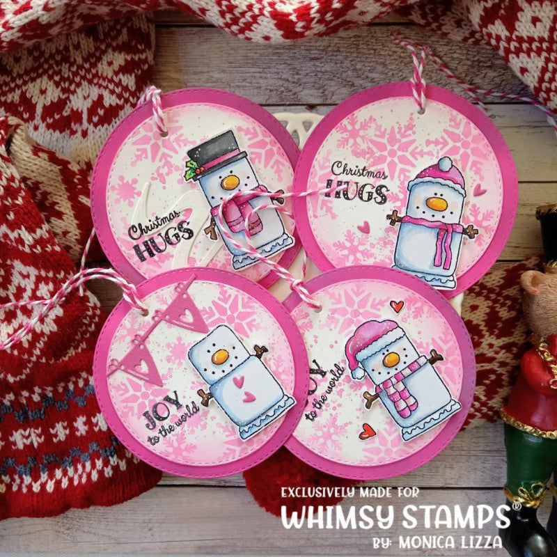 Four adorably cute marshmallow snowmen along with coordinating sentiments. Perfect for sending holiday smiles across the miles. Coordinates with our S'mores outline die set, sold separately.