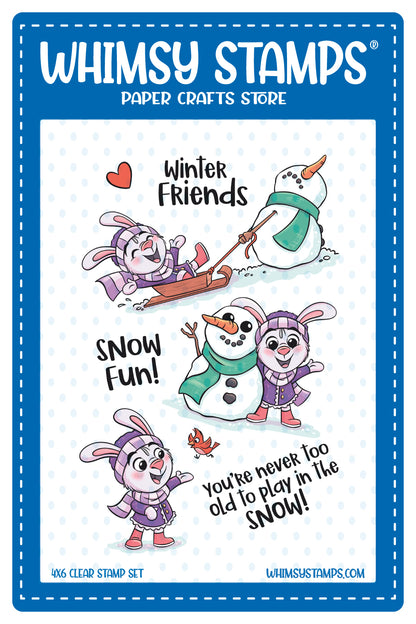 Clearly Whimsy Stamps Collection "Winter Friends Snowman and Bunny" clear stamp set, designed by Krista Heij-Barber for Whimsy Stamps.