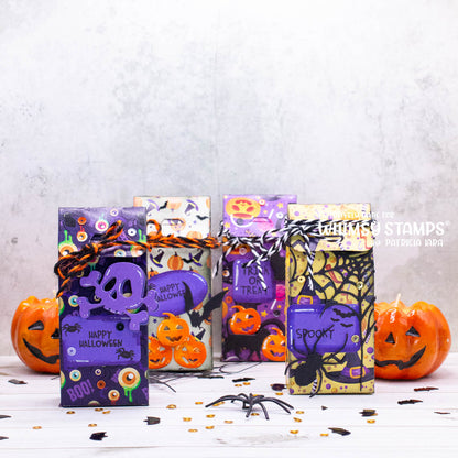 6 piece die set - includes 1 large die to make a treat box that is 4" x 1.75" x 1" approximately. Use this die to create adorable gift boxes to hide trinkets and candies. Add the "window" shape dies to create peekaboo holes in your box.