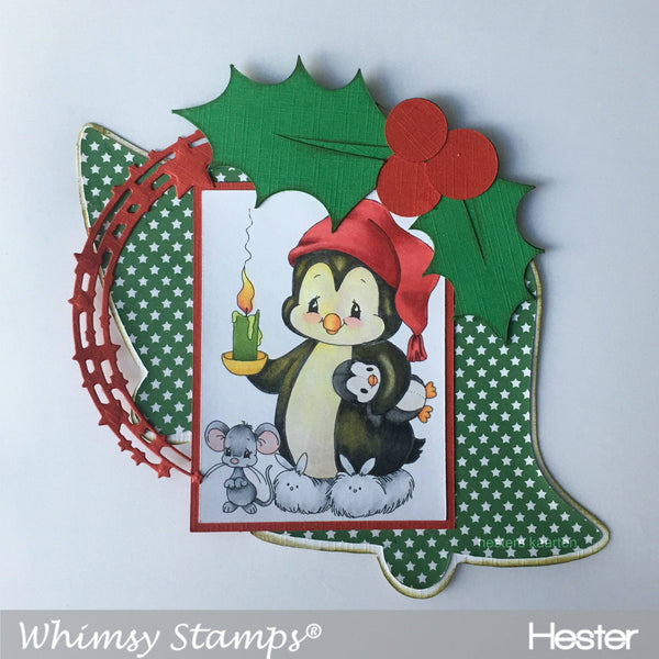 "Penguin Candle Light Set" digital stamp designed by Crissy Armstrong for Whimsy Stamps. This file includes penguin standing on floor (as shown in display), penguin by itself, and floor by itself for a total of 3 different files in one download.