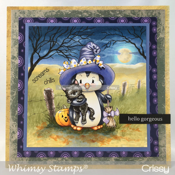 "Penguin Spook Nite" digital stamp designed by Crissy Armstrong for Whimsy Stamps.