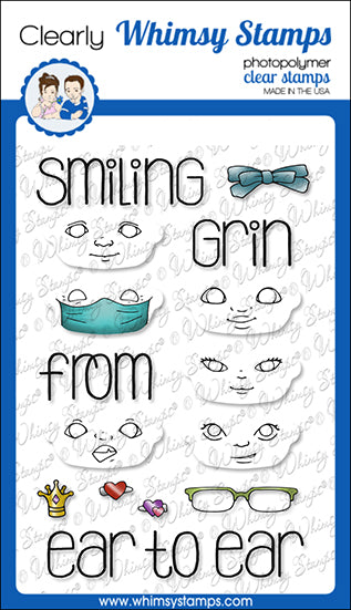 Clearly Whimsy Stamps Collection "Polka Dot Pals Faces" illustrated by Barbara Sproatmeyer for Whimsy Stamps. © Whimsy Stamps. Coordinates with Polka Dot Pals character sets, each sold separately.