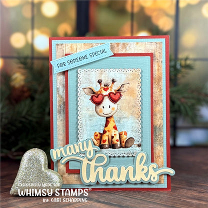 Whimsy Stamps Quick Card Fronts - "Heartfelt Giraffes 2" are great for card making, journaling, mixed media, scrapbooking, and paper hoarding. These card fronts are printed on high-quality cardstock and proudly made in the USA.
