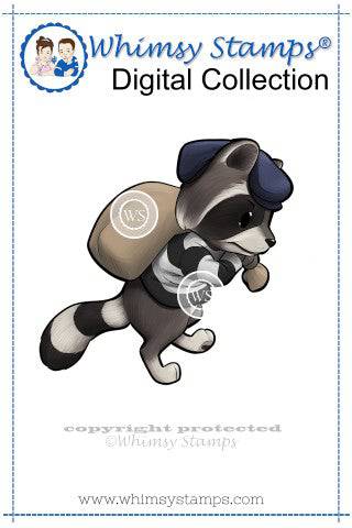 "Raccoon Burglar" digital stamp designed by Some Odd Girl for Whimsy Stamps.