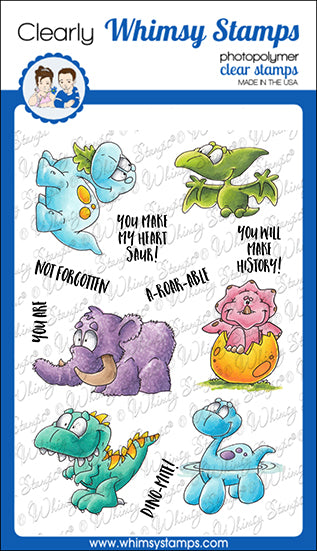 Clearly Whimsy Stamps Collection "Roar-a-Saur" illustrated by Dustin Pike for Whimsy Stamps. © Whimsy Stamps.