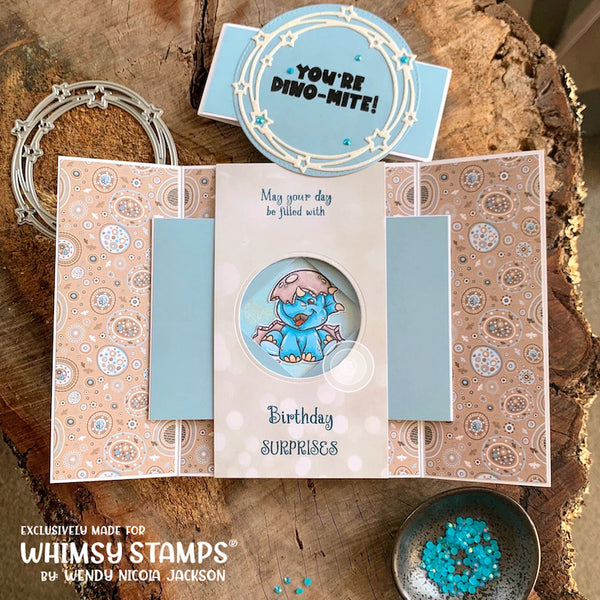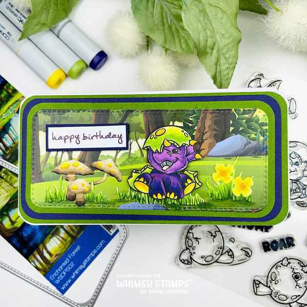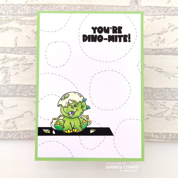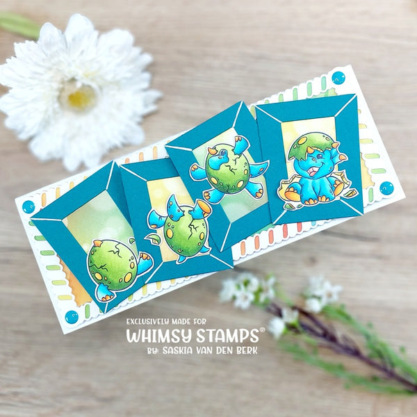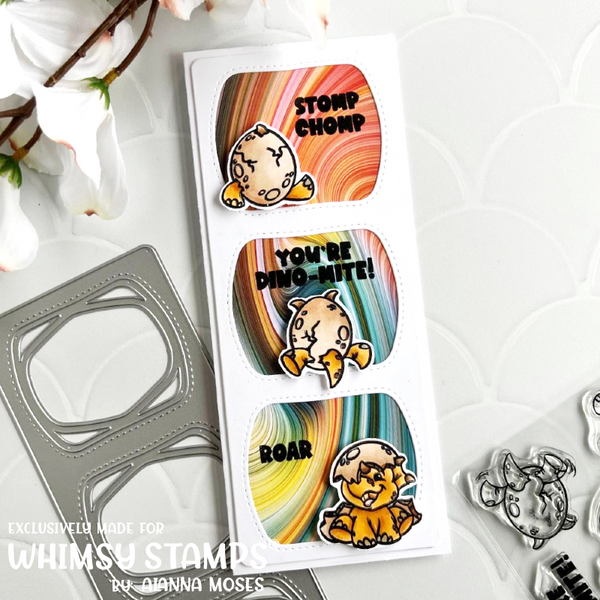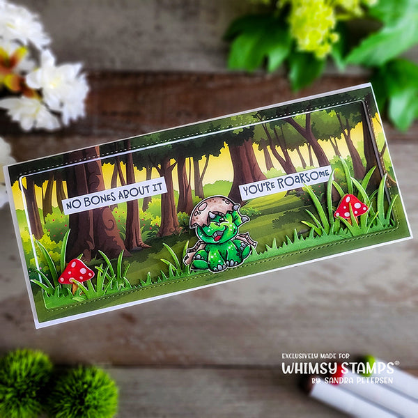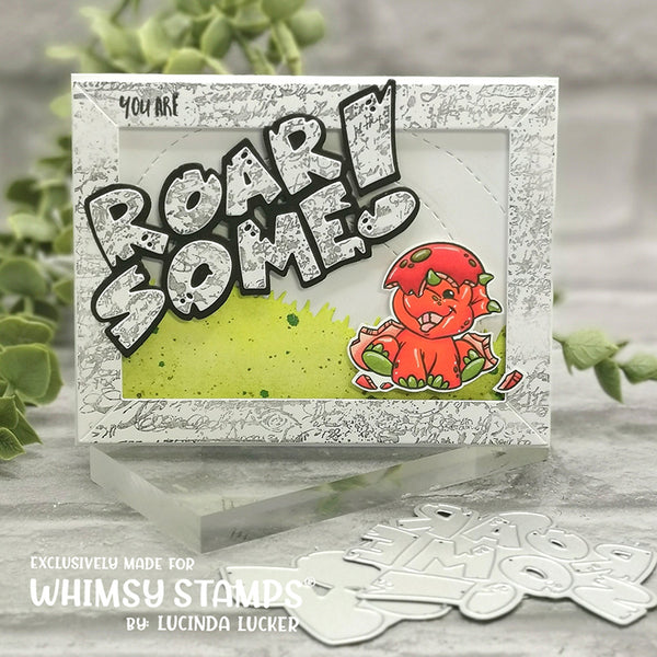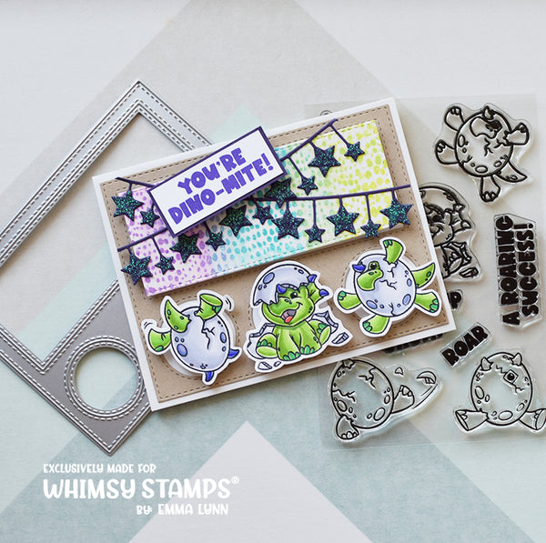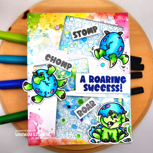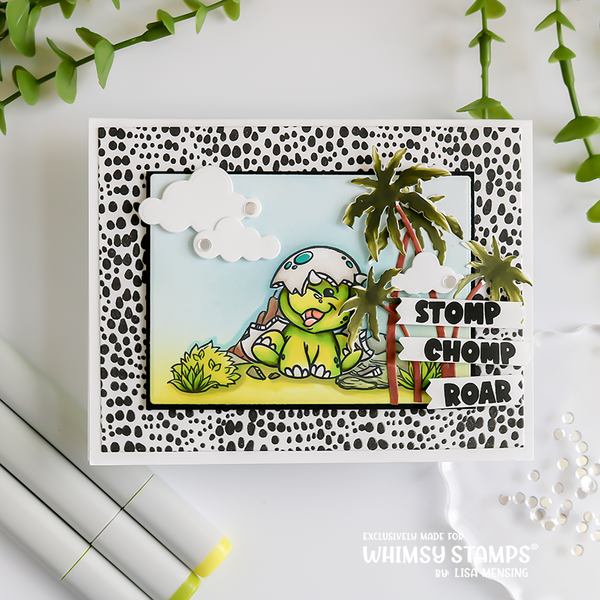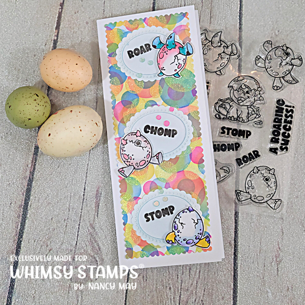 Clearly Whimsy Stamps Collection "Roar, Stomp, and Chomp" image and sentiment set designed by Krista Heij-Barber for Whimsy Stamps.