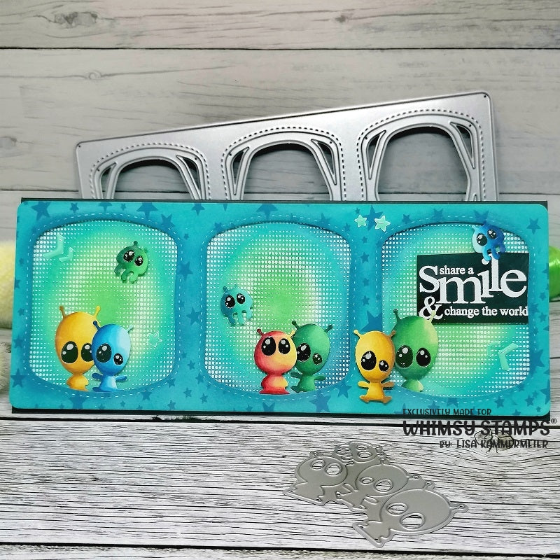 1 die that cuts out 4 minion/aliens - perfect for complementing your space creations. Pair with other space collection products for added fun. Perfect to accent cards or scrapbook pages.